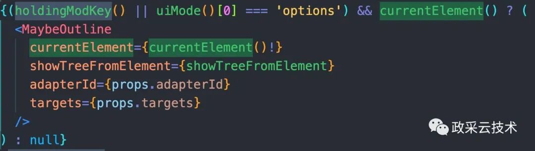 mouseover 处理函数,就把当前的 element 选中;keydown 处理函数使 holdingModKey 为 true。在这种情况下,页面渲染的就是 MaybeOutline 组件