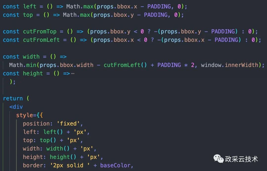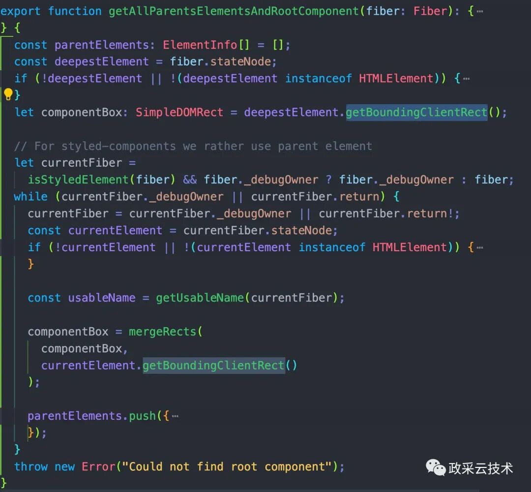 可以看到,它是通过 bbox 的属性计算出了整个元素的外边框。bbox 又是通过 fiber 元素的 getBoundingClientRect 计算出来的。到这里就全部解开了 locatorjs 的神秘面纱了。
