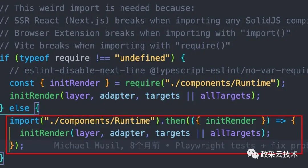 接着,它又引入了 components/Runtime 组件,并且考虑到了 SSR 的情况。我们是客户端渲染,所以走的是第二种情况。