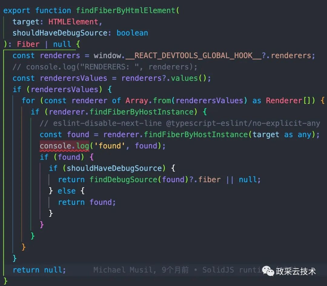 在这个方法里,我们看到了熟悉的影子 fiber。这里最重要的函数就是 findFiberByHtmlElement,通过命名也能知道。就是通过 html 元素去查询 fiber 节点。