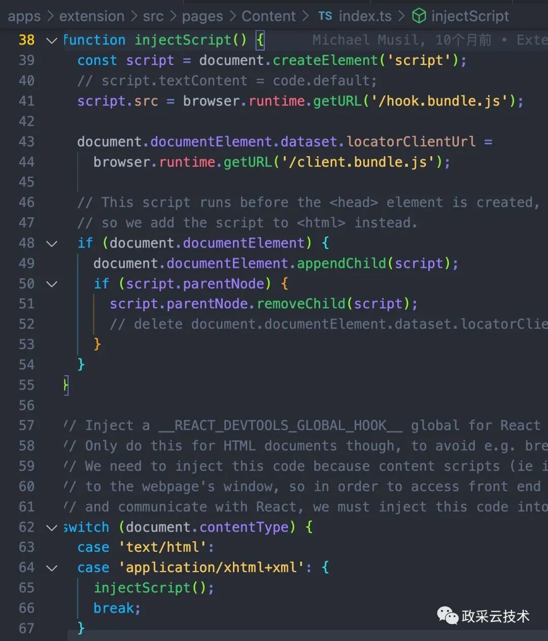这个插件的执行入口就在 content.ts。如果对插件不熟悉的同学,可以参考 Extensions - Chrome Developers(https://developer.chrome.com/docs/extensions/) 插件开发网站。
