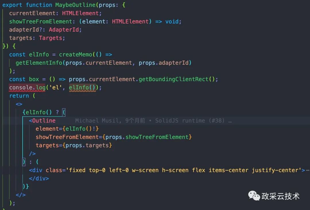 在 MaybeOutline 组件里面,主要的就是获取当前 element 的信息。然后根据 elementInfo 去渲染红色的外边框。