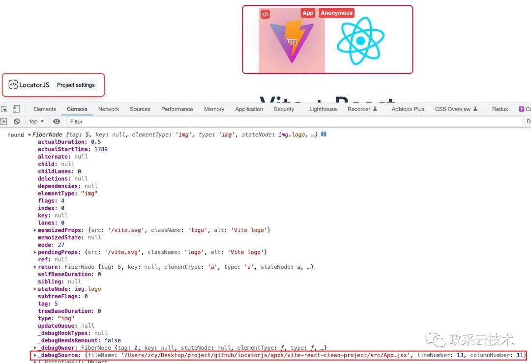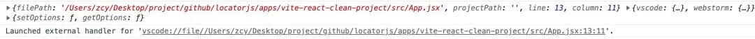 通过下图可以看到,_debugSource 里面居然自带了当前元素位置信息,还有 lineNumber、columnNumber,难怪可以具体定位到代码中。有了这个信息,跳转到 vscode 还不是轻而易举。