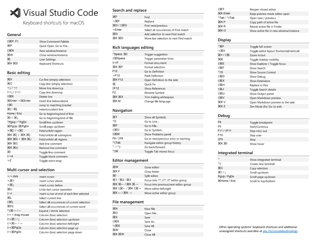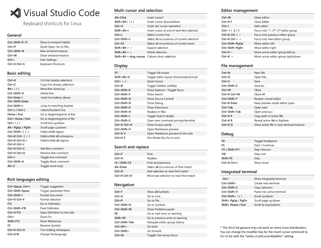 最后,附上在 Windows、Linux、macOS 系统中 VS Code 的快捷键: