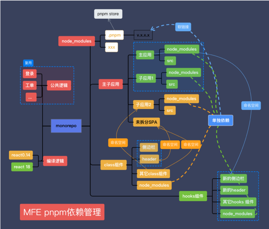 拆分完的子应用使用 pnpm 的命名空间复用公用模块