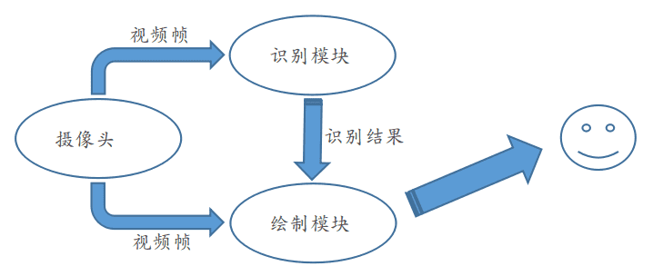 在说 WebAR 之前,先看一下 AR。简要讲:AR 是通过启动摄像头获取现实环境,以视频帧的形式将现实环境数据传输给 识别模块 与 绘制模块,识别模块将识别结果数据传递给绘制模块(根据业务配置的识别规则处理成对应的虚拟事物),绘制模块将 现实环境数据与识别结果数据处理后进行展现。