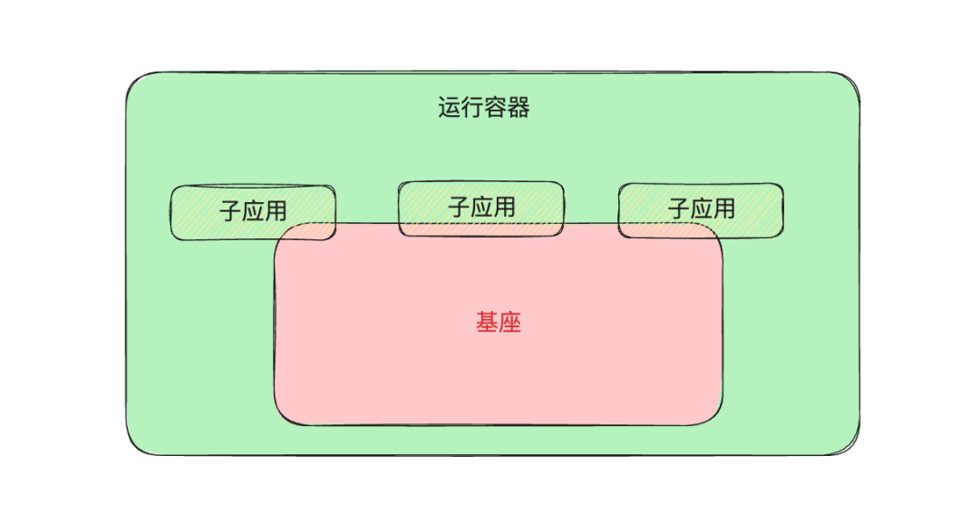 如上所示,基座为子应用提供了基础的运行环境, 蓝色区域为子应用的运行范围。