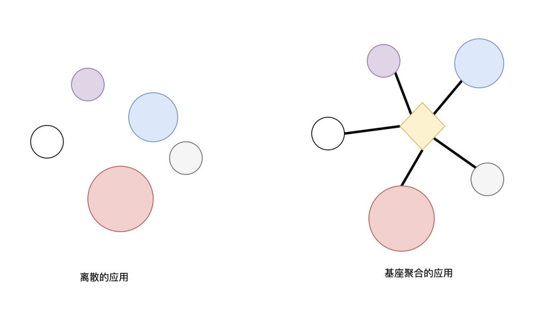 离散的应用结构,转换为星状结构。基座可以统一管理子应用。