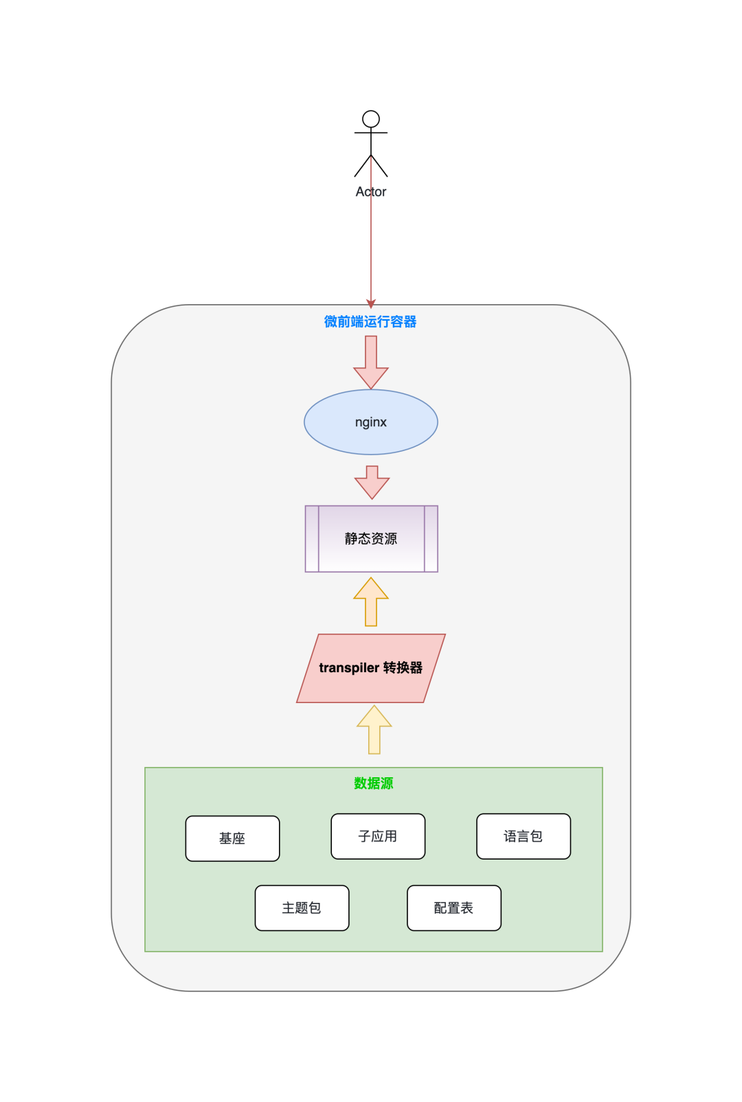 Nginx:毫无疑问,Nginx 是静态资源伺服的最佳能手,同时它作为内部服务反向代理。transpiler(我们称为转换器): 这是一个「搬运工」,主要负责配置的收集、代码转换。并将转换后的静态资源交给nginx伺服。