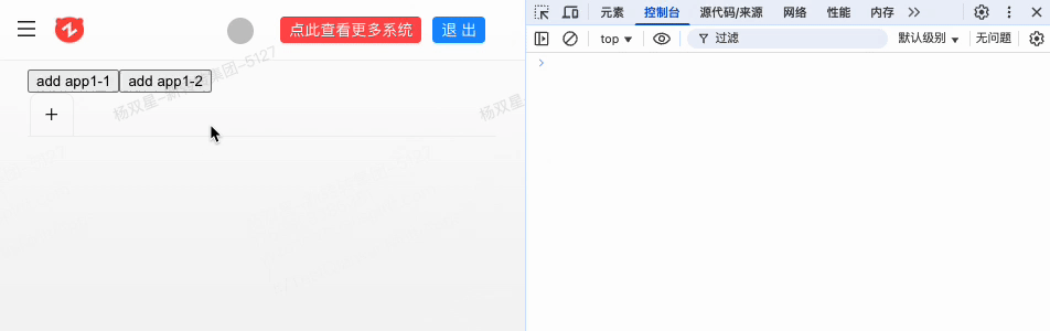 操作二:先打开 app1-2,再打开 app1-1,关闭 app1-2,再打开 app1-2,新打开的 app1-2 加载失败,内容空白,控制台有报错;