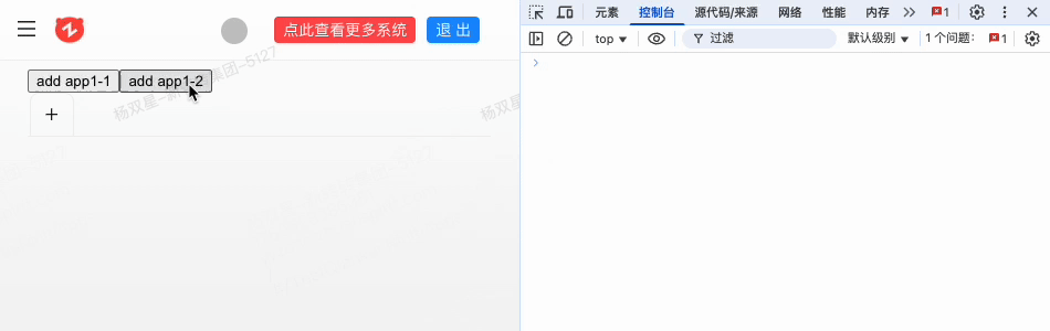 操作一:先打开 app1-1,再打开 app1-2,然后关闭 app1-1 后会导致 app1-2 也消失,然后关闭 app1-2 的 tab,控制台有报错;