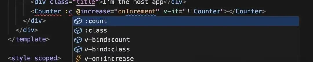 <Counter :count="count" @increase="onInrement"></Counter>代码中使用defineAsyncComponent异步加载远端组件,这样的好处是安需动态加载,能减少应用包的大小。
