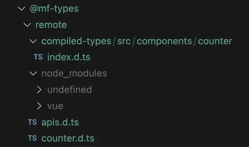 Vue,因此在@mf-types/remote/node_modules下能看到 Vue 的类型定义文件;
