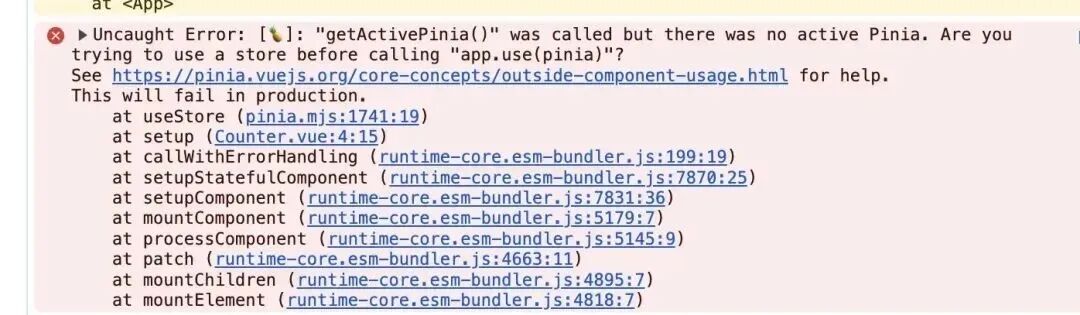 要解决这个问题,需要动态的获取 app 实体,并在useStore()之前,保证createPinia已经执行。可通过以下方式动态获取 app 实体。