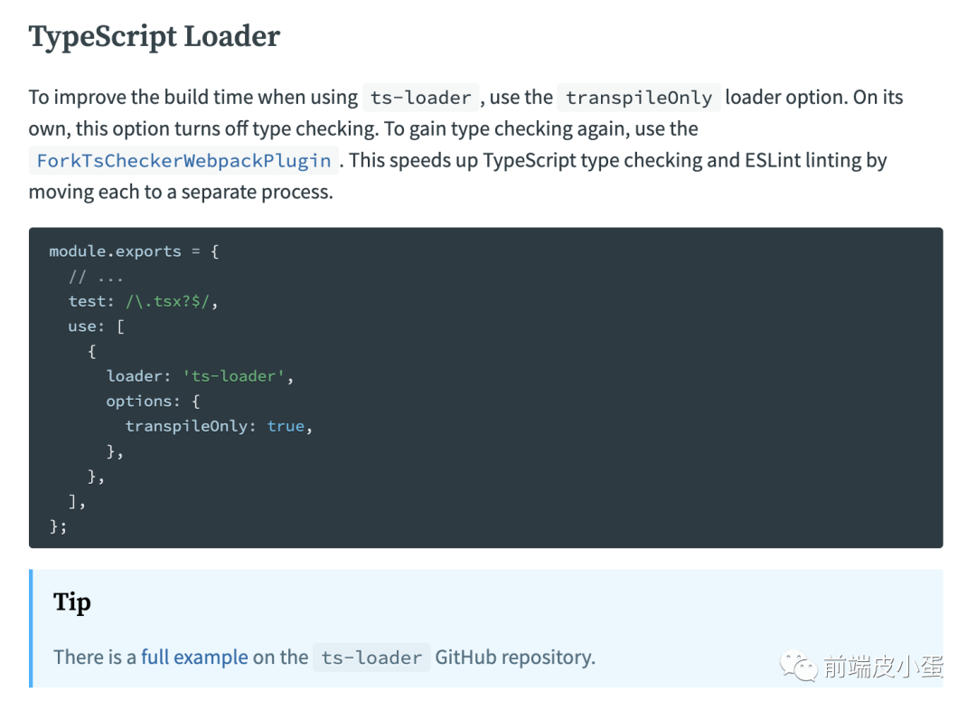 文档建议, 我们开启transpileOnly选项,关闭类型检查。