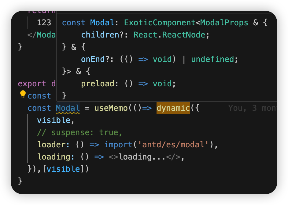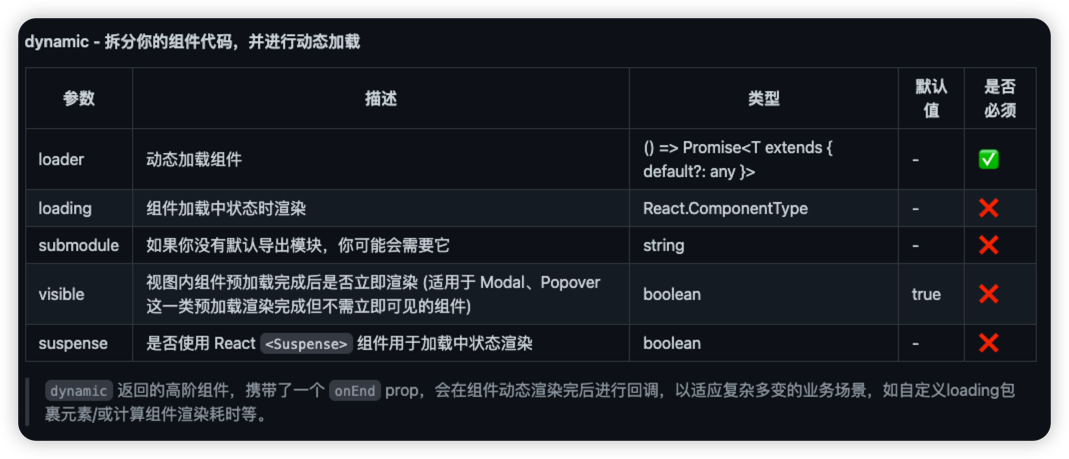 useEffect(() => { import("xxxx/component").then((loadScript) => {});}, []);优点:拆分组件代码, 开发者可以更细粒度地控制组件按需加载的时机。