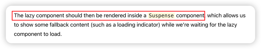 react.lazy有一个局限就是必须放在<Suspense>组件内,无法独立渲染<LazyComponent />。