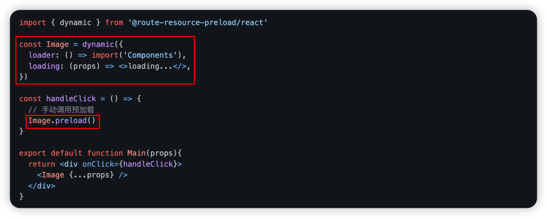 支持手动调用预加载, 类 react-lodable 的方式,但支持批量。单个组件手动预加载