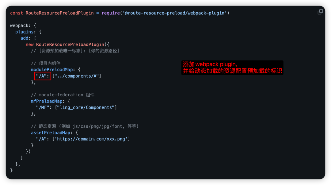 那么我们在 webpack 编译层面是可以获取到打包chunk的详细信息的,是不是可以在 plugin 层面对按需加载的chunk进行统一维护,同时减少侵入式代码,于是便有了此方案 route-resource-preload[4], 其具备的特性: