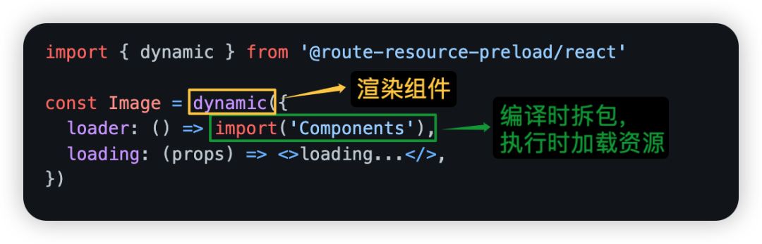 dynamic是基于import()做的一个封装函数。支持组件资源批量自动预加载,同时支持自定义触发时机,如 hover 到某个组件上、某组件渲染时、出现在视图内时。( Component / Module-Federation / UMD / Svg / Png 等静态资源). 自动预加载步骤: