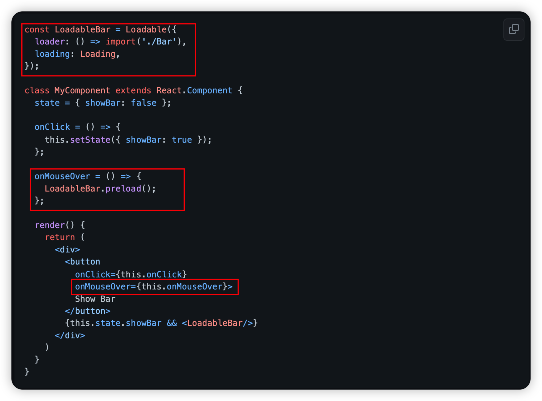 react-lodable: _https://link.juejin.cn/?target=https%3A%2F%2Fgithub.com%2Fjamiebuilds%2Freact-loadable_