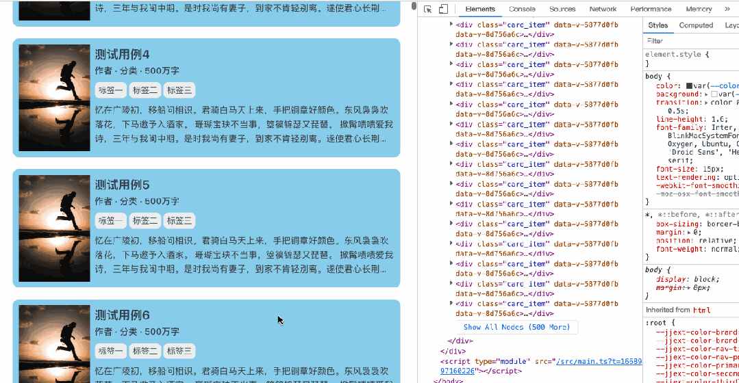 我们只需要给添加了 content-visibility: auto 的元素添加上 contain-intrinsic-size 就能够解决滚动条抖动的问题,当然,这个高度约接近真实渲染的高度,效果会越好,如果实在无法知道准确的高度,我们也可以给一个大概的值,也会使滚动条的问题相对减少。