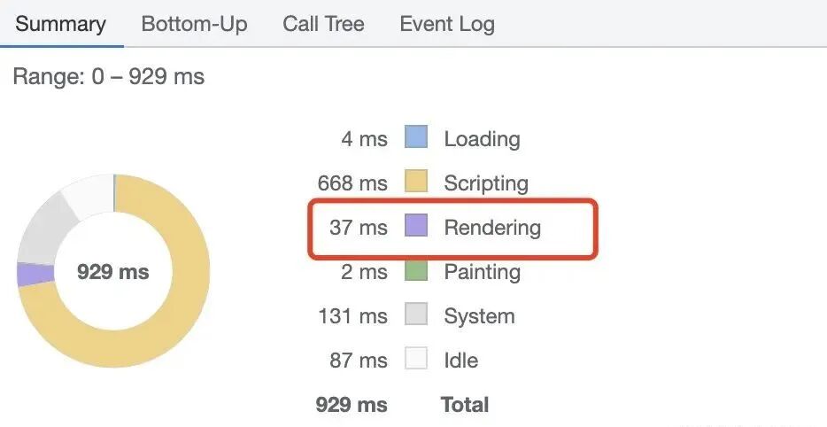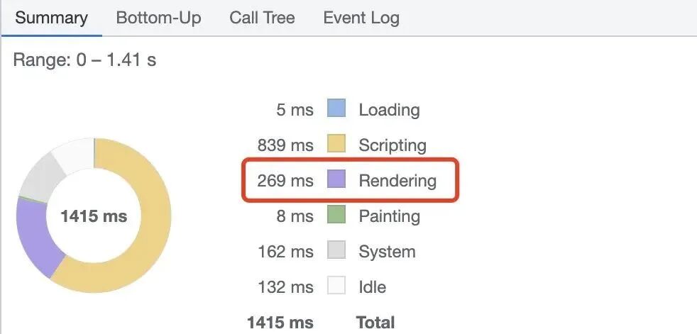 上面是用 1000 个列表元素进行测试的,有 content-visibility 的页面渲染花费时间大概是 37ms,而没有 content-visibility 的页面渲染花费时间大概是 269ms,提升了足足有 7 倍之多!!!