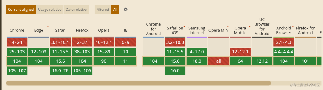 实际上在浏览器端的全局对象 window 上有一个名为 performance 的属性,它是一个用于支持 IE9 以上及 webkit 内核浏览器中用于记录页面 加载 和 解析 过程中关键时间点的机制,其兼容性在 caniuse[3] 中的表现如下: