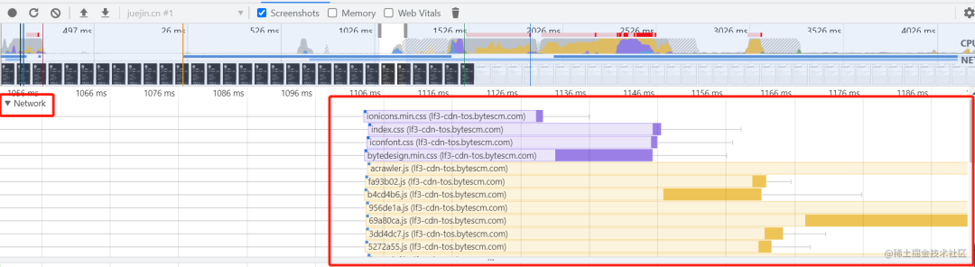 通过 Networks 指标可以查看到对应服务器加载资源的相关信息: