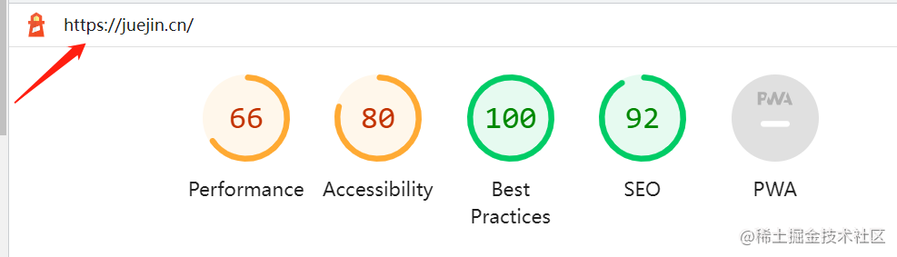 相反,Lighthouse 面板中的信息就相对简洁一些,除了检测结果以外,还会提供对应的改进方案,真是考虑得妥妥的,主要检测五个方面的内容:
