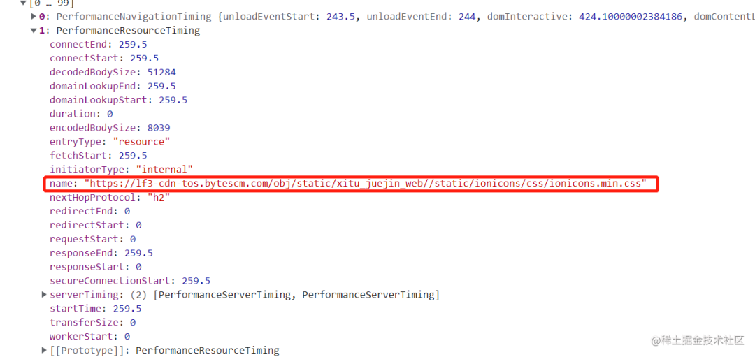 performance.getEntries() 方法可以获取所有资源请求的时间数据,如下: