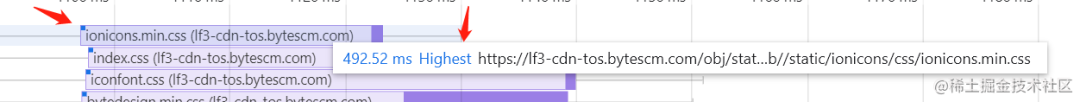 可以将鼠标 移动 或 点击 到具体的请求上查看加载时间和加载速度,如下: