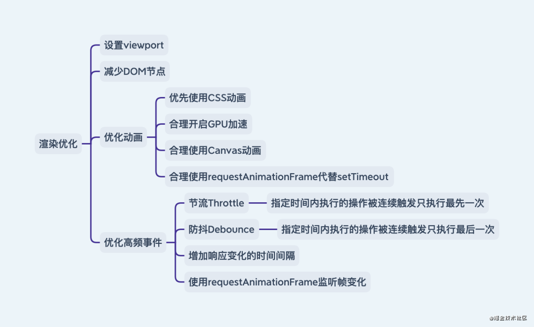 **「渲染层面」**的性能优化,无疑是如何让代码解析更好执行更快。因此笔者从以下五方面做出建议。