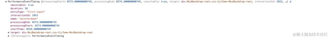 lastInputTime: 返回最近排除的用户输入的时间,如果没有则返回 0。仅考虑那些用户未期望的偏移,例如在响应用户互动时发生的离散事件,如点击链接、点击按钮或请求 API 时显示加载等。这些情况被视为合理的偏移。