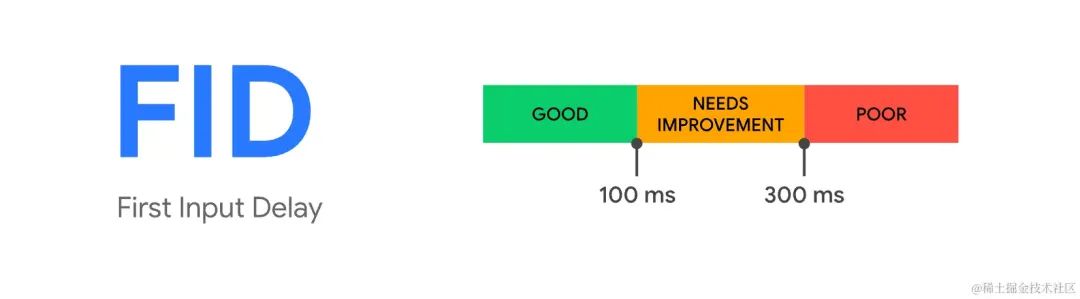 - 指的是用户首次与页面交互到浏览器实际能够开始处理程序以响应该交互的时间。FID 测量接收到输入事件与主线程下次空闲之间的增量。即使在未注册事件侦听器的情况下,也会测量 FID。此外,FID 仅关注离散事件操作,例如点击、触摸和按键等。与之不同的是,缩放和滚动以及持续性事件(如 mousemove、pointermove、touchmove、wheel 和 drag)不包括在这个指标中。详细了解可以点击这里 [7]。