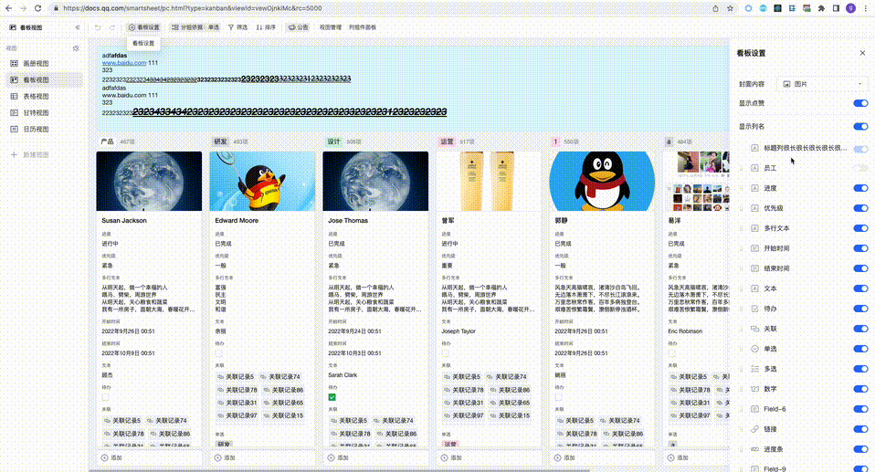 其中看板视图和画册视图是以卡片的形式来展现,非常适合做一些运营活动和项目管理。