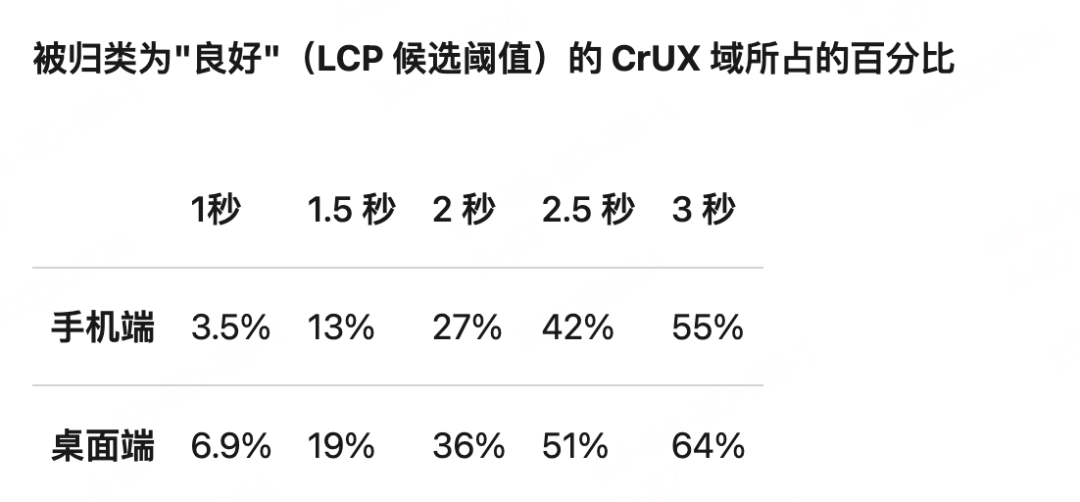 例如,虽然零毫秒是理想的LCP"良好" 阈值,并且可以带来即时加载体验,但由于网络和设备处理延迟,零毫秒的阈值实际上在大多数情况下都无法实现。因此,对于核心Web指标来说,零毫秒不是一个合理的LCP"良好" 阈值。