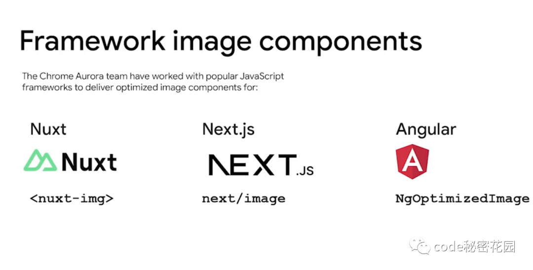 如果我们使用了 JavaScript 框架,建议使用 Chrome Aurora 团队开发的 Image 组件添加图像。其中 Angular 和 XJS 组件已经内置了提取优先级的支持,团队也正在开发 Next.js 的 Image 组件,以支持这个新的 API 。Chrome 团队也与其他平台有着合作,例如如果大家使用的是 WordPress,就可以尝试使用官方 WordPress 性能实验室插件的新提取优先级模块。这是 Chrome 团队与 WordPress 核心性能团队开发合作的成果。