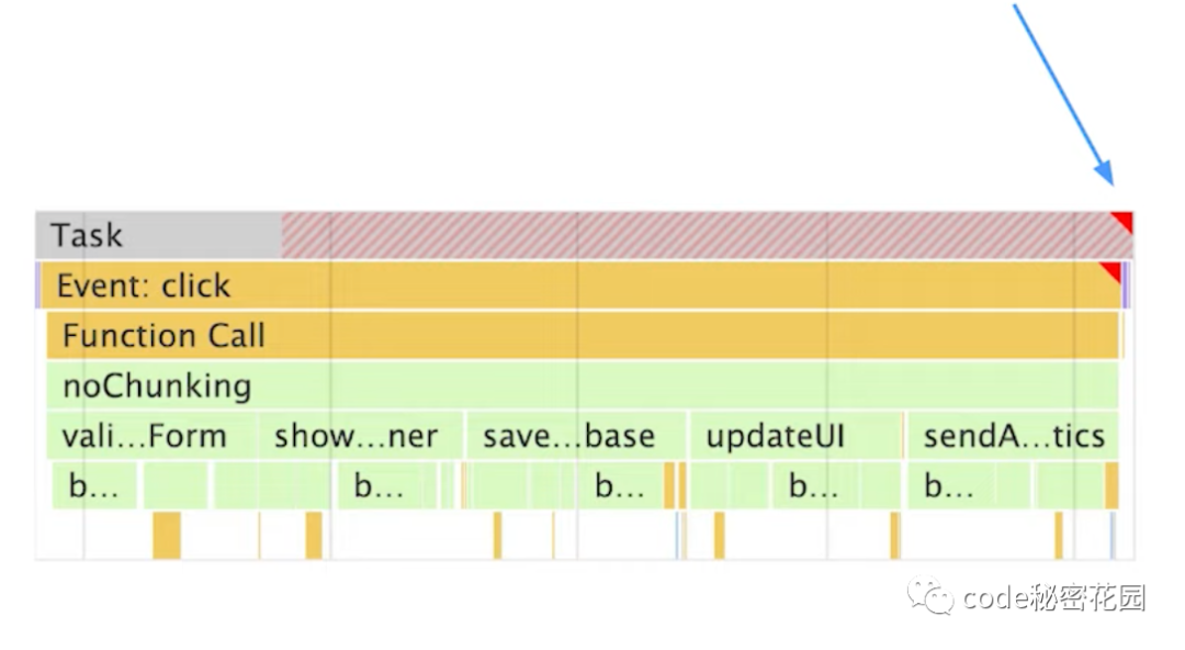 第一个建议是识别并分解长任务,相当于给浏览器一些喘息的空间,以便它能够响应用户输入。Chrome Devtools和 Lighthouse 将长任务定义为需要 50 毫秒或更长时间的渲染工作。这可能听起来不是很多,但在浏览器术语中,这可以是网站能感觉到比较好的响应或不响应的区别。JavaScript 是单线程且贪婪的,一旦它占用了 CPU,它就会尽可能地一直保持它,直到它不能处理或者处理完毕为止。在这个例子中,即使有五个子进程,所有的五个进程也是会一个接一个地执行。所以,在我们的代码中放置一些断点就是关键了。