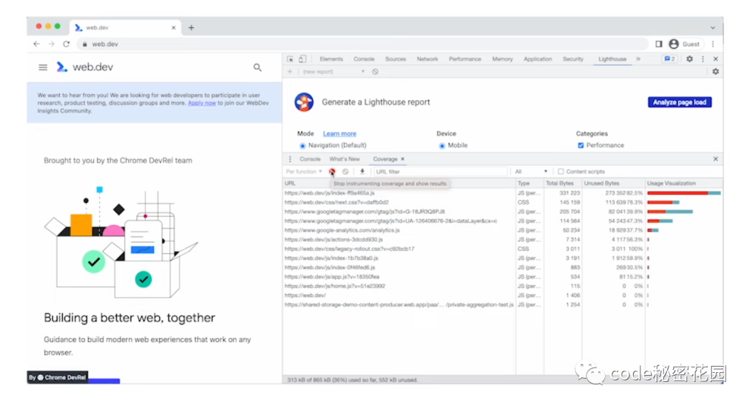 这些就是我们认为大家首先应考虑的九个改善网站核心性能指标的优化建议。这并不是一个明确的列表,而是我们的研究表明可以真正提高大家网站性能的几个更有影响力的选项。包括 Chrome Devtools、Lighthouse 和我们添加到 JavaScript 框架和平台中的组件,许多这些建议已经涵盖在我们的各种工具中。但我们并没有放松警惕,并且也在一直更新我们的工具和文档,来呈现这些关键建议。