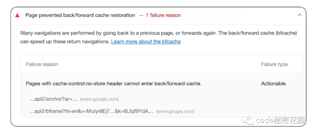 在 Lighthouse 10 中,也添加了一个类似的检测能力,也可以解释页面不符合资格的原因。BF Cache 是 Chrome 团队为了让网页浏览更快的正在开发的一系能力之一,这个领域还有一些其他的能力,比如预加载和预渲染也是可以改善网站 CLS 指标的。