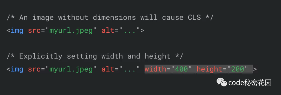第一个 CLS 优化建议是确保内容能被显式地缩放,当它第一次被浏览器渲染时,它就可以以正确的尺寸渲染。一般情况下,我们都会热衷于推荐大家设定图像的宽度和高度的尺寸或
