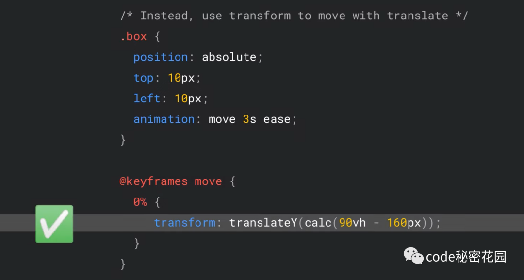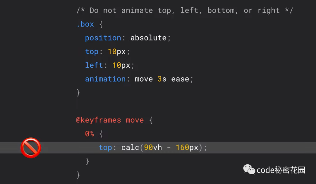 始终优先使用复合动画,比如如 transform ,而不是图层诱导的非复合动画,如更改 top、right、bottom 和 left。