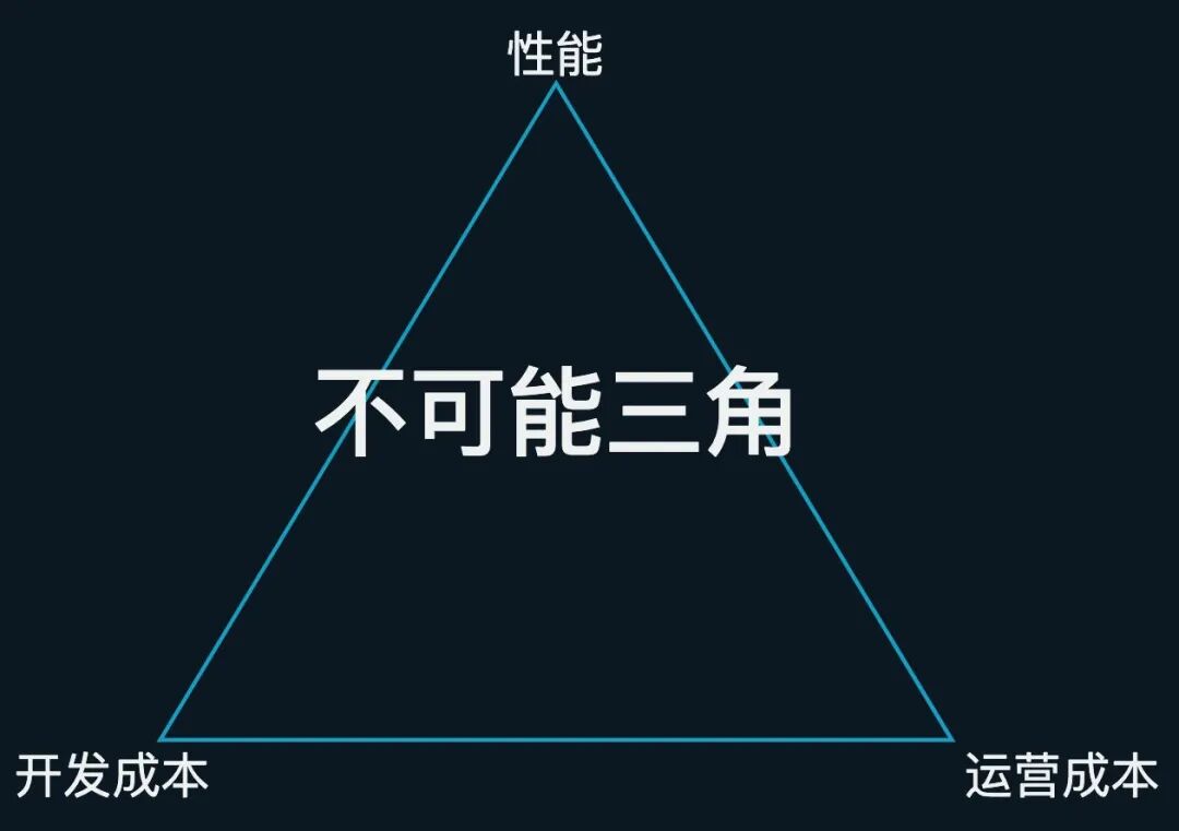 而且已知搭建页面性能较差,源码页面性能更好的情况下,我们又加入了 “性能” 这个维度,构成了一个性能优化的 “不可能三角”,即: