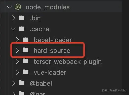 HardSourceWebpackPlugin 是 webpack 的插件,为模块提供中间缓存步骤,通俗一点为缓存了一些文件到你的 node_modules。