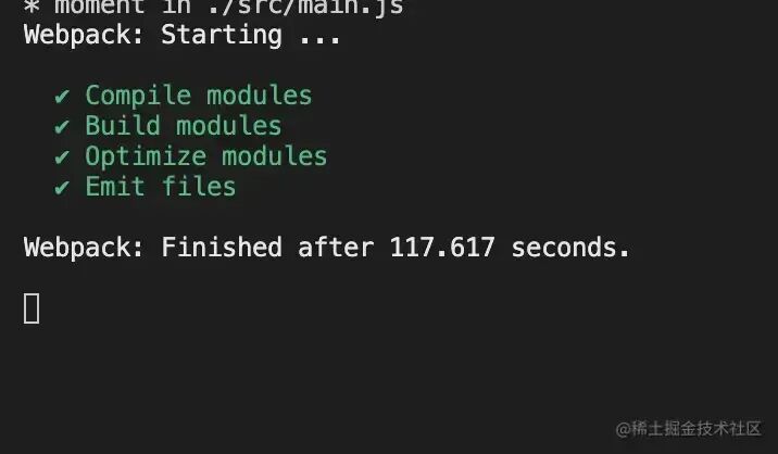 ini复制代码//webpack.config.jsvar HardSourceWebpackPlugin = require('hard-source-webpack-plugin');module.exports = { //... plugins: [ new HardSourceWebpackPlugin() ]}打包时间优化