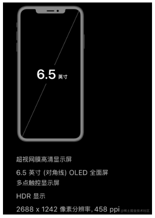 它的 CSS 像素是 896 x 414,很容易得出 iPhone XS Max 的 dpr 为 3。
