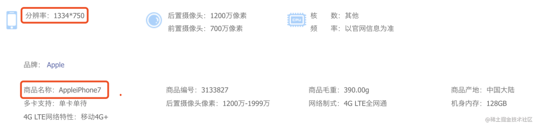 OK,那么,什么又是物理像素呢。我们到电商网站购买手机,都会看一看手机的参数,以 JD 上的 iPhone7 为例: