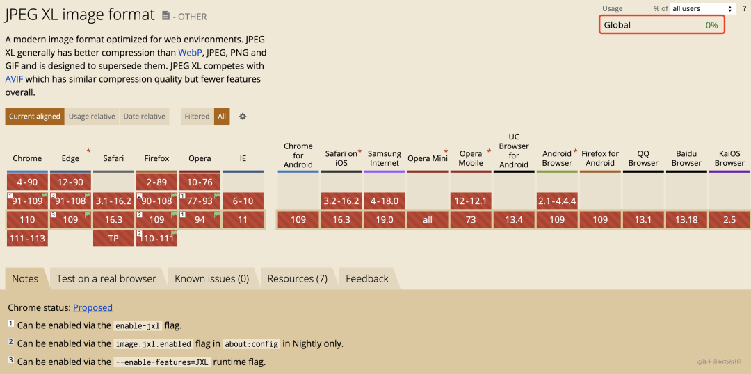 JPEG XL 是目前而言,最有可能全面替代传统图片格式(Gif、PNG、JPEG)的下一代标准,当然,在今天,需要看看其兼容性: