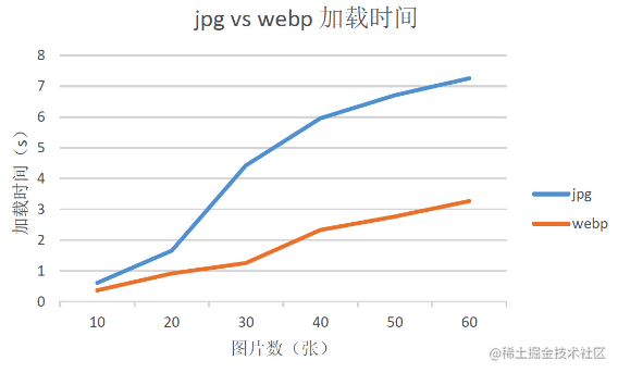 加载同样张数的 JPEG 与 WebP 的耗时对比: